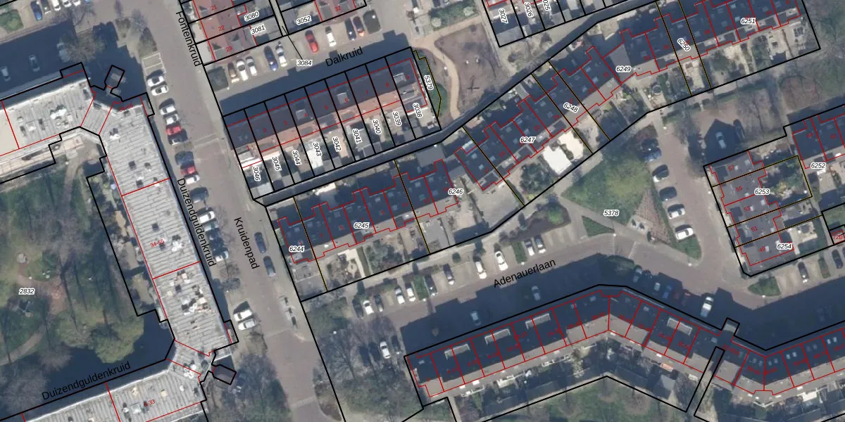 Het perceel waarop Adenauerlaan 13 staat heeft een oppervlakte van 524 m². Dit is een groot perceel. De perceeloppervlakte wordt geregistreerd door het Kadaster. Gedetailleerde informatie over de maten van dit perceel kunt u vinden in het rapport Kadastrale kaart met maatvoering van Adenauerlaan 13.