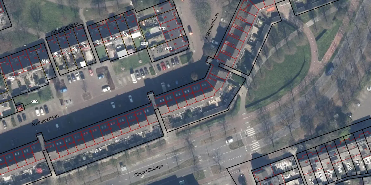 Het perceel waarop Adenauerlaan 138 staat heeft een oppervlakte van 6460 m². Dit is een zeer groot perceel. De perceeloppervlakte wordt geregistreerd door het Kadaster. Gedetailleerde informatie over de maten van dit perceel kunt u vinden in het rapport Kadastrale kaart met maatvoering van Adenauerlaan 138.