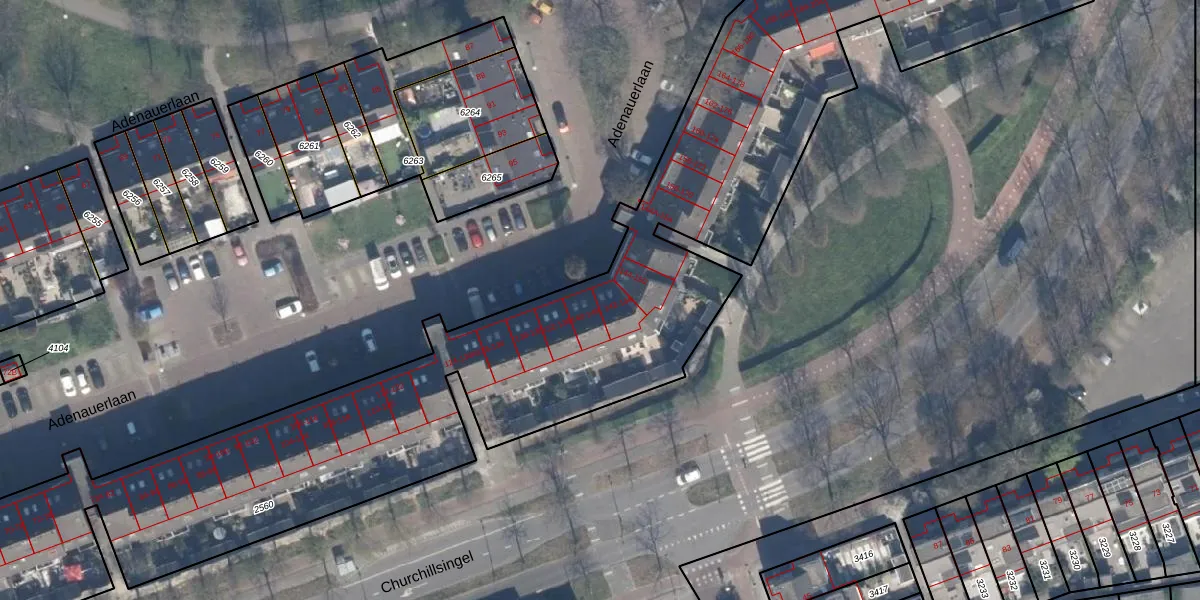 Het perceel waarop Adenauerlaan 142 staat heeft een oppervlakte van 6460 m². Dit is een zeer groot perceel. De perceeloppervlakte wordt geregistreerd door het Kadaster. Gedetailleerde informatie over de maten van dit perceel kunt u vinden in het rapport Kadastrale kaart met maatvoering van Adenauerlaan 142.