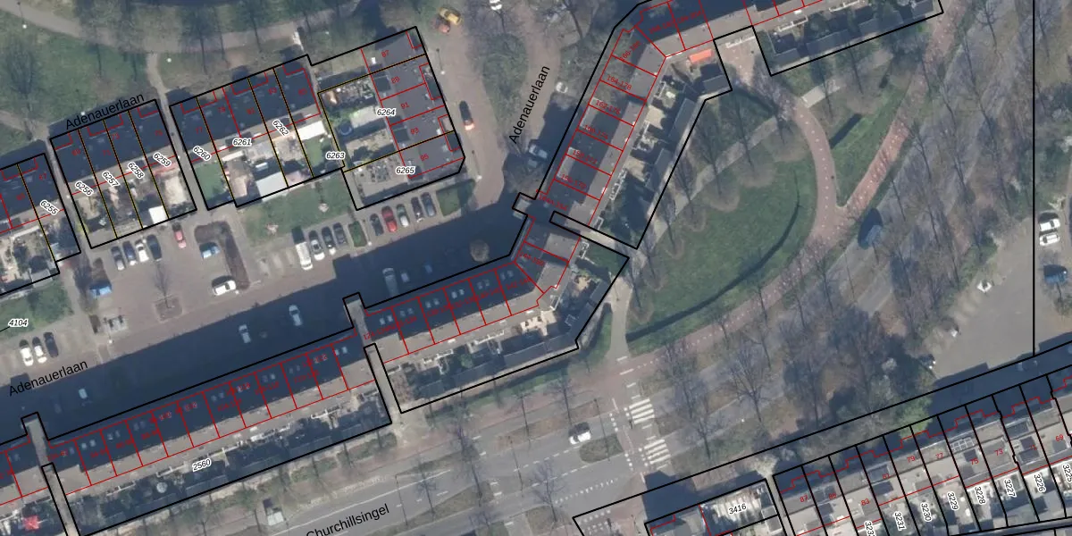 Het perceel waarop Adenauerlaan 150 staat heeft een oppervlakte van 6460 m². Dit is een zeer groot perceel. De perceeloppervlakte wordt geregistreerd door het Kadaster. Gedetailleerde informatie over de maten van dit perceel kunt u vinden in het rapport Kadastrale kaart met maatvoering van Adenauerlaan 150.