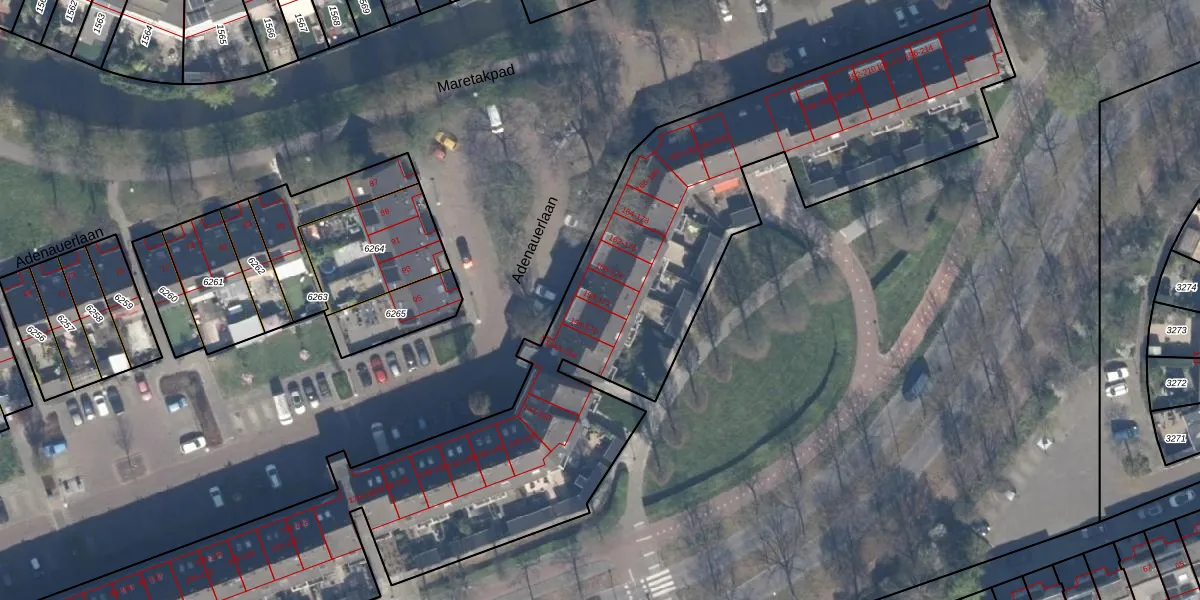 Het perceel waarop Adenauerlaan 158 staat heeft een oppervlakte van 6460 m². Dit is een zeer groot perceel. De perceeloppervlakte wordt geregistreerd door het Kadaster. Gedetailleerde informatie over de maten van dit perceel kunt u vinden in het rapport Kadastrale kaart met maatvoering van Adenauerlaan 158.
