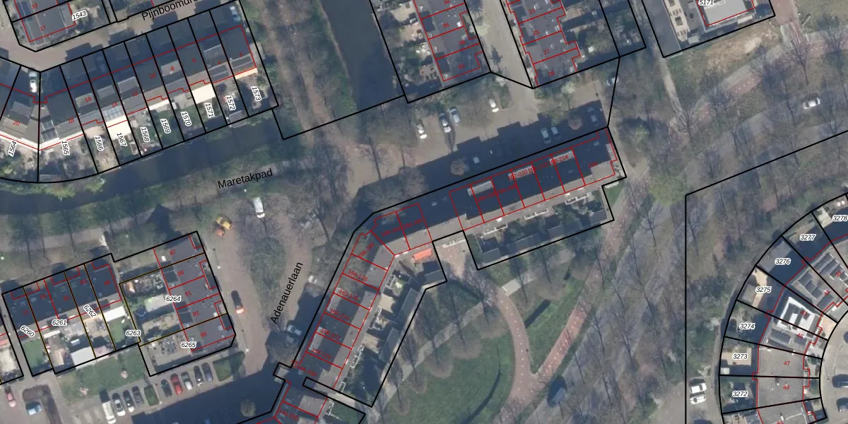 Het perceel waarop Adenauerlaan 200 staat heeft een oppervlakte van 6460 m². Dit is een zeer groot perceel. De perceeloppervlakte wordt geregistreerd door het Kadaster. Gedetailleerde informatie over de maten van dit perceel kunt u vinden in het rapport Kadastrale kaart met maatvoering van Adenauerlaan 200.