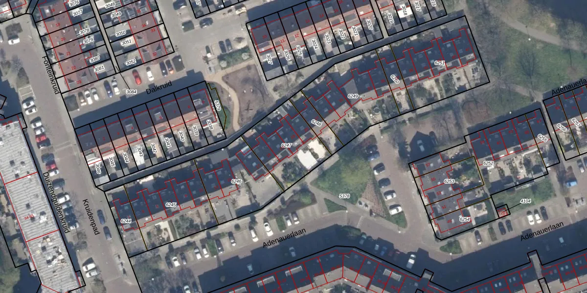 Het perceel waarop Adenauerlaan 23 staat heeft een oppervlakte van 493 m². Dit is een groot perceel. De perceeloppervlakte wordt geregistreerd door het Kadaster. Gedetailleerde informatie over de maten van dit perceel kunt u vinden in het rapport Kadastrale kaart met maatvoering van Adenauerlaan 23.