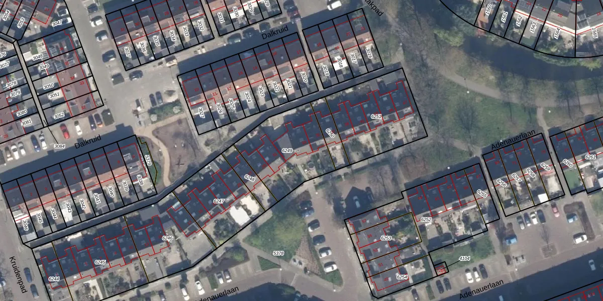 Het perceel waarop Adenauerlaan 33 staat heeft een oppervlakte van 624 m². Dit is een groot perceel. De perceeloppervlakte wordt geregistreerd door het Kadaster. Gedetailleerde informatie over de maten van dit perceel kunt u vinden in het rapport Kadastrale kaart met maatvoering van Adenauerlaan 33.