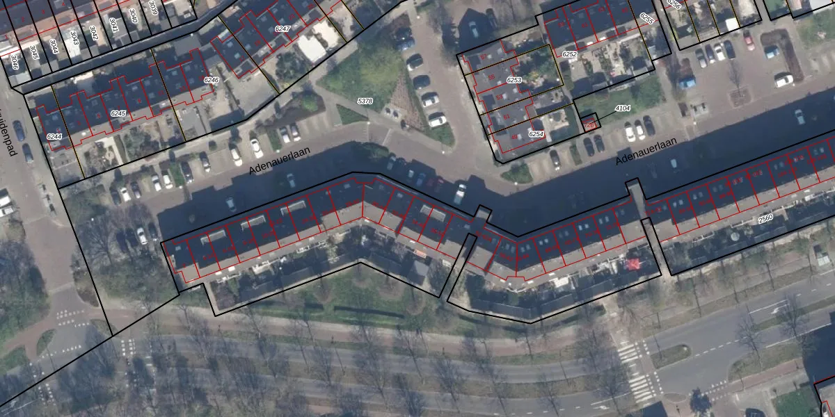 Het perceel waarop Adenauerlaan 34 staat heeft een oppervlakte van 6460 m². Dit is een zeer groot perceel. De perceeloppervlakte wordt geregistreerd door het Kadaster. Gedetailleerde informatie over de maten van dit perceel kunt u vinden in het rapport Kadastrale kaart met maatvoering van Adenauerlaan 34.