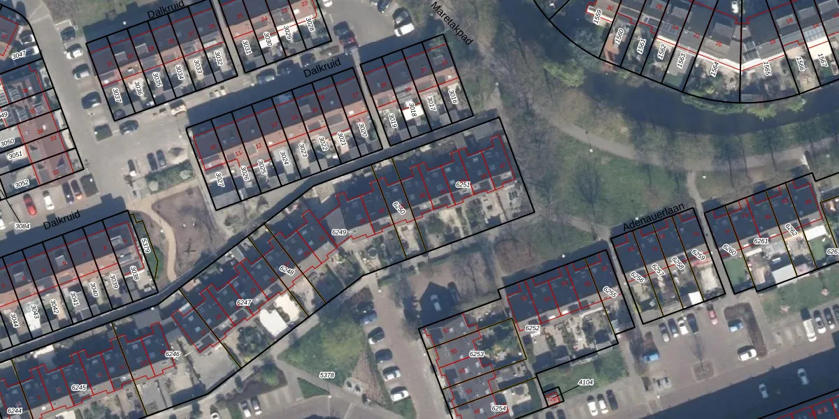 Het perceel waarop Adenauerlaan 39 staat heeft een oppervlakte van 660 m². Dit is een groot perceel. De perceeloppervlakte wordt geregistreerd door het Kadaster. Gedetailleerde informatie over de maten van dit perceel kunt u vinden in het rapport Kadastrale kaart met maatvoering van Adenauerlaan 39.