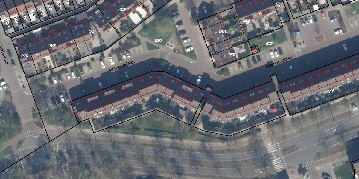 Het perceel waarop Adenauerlaan 48 staat heeft een oppervlakte van 6460 m². Dit is een zeer groot perceel. De perceeloppervlakte wordt geregistreerd door het Kadaster. Gedetailleerde informatie over de maten van dit perceel kunt u vinden in het rapport Kadastrale kaart met maatvoering van Adenauerlaan 48.