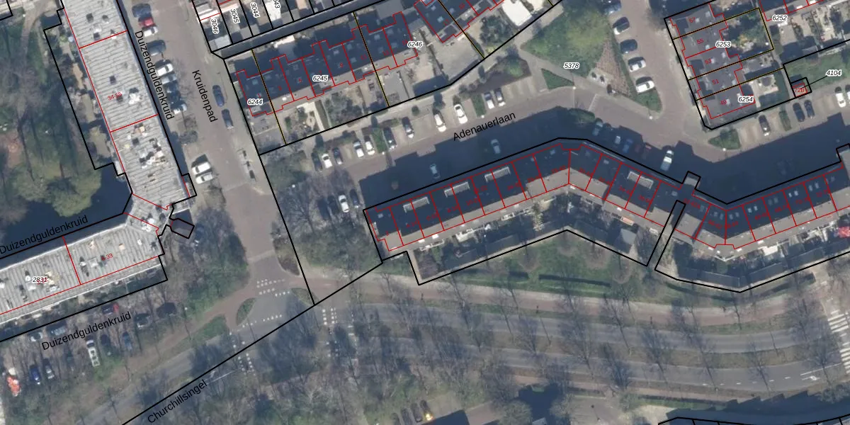 Het perceel waarop Adenauerlaan 6 staat heeft een oppervlakte van 6460 m². Dit is een zeer groot perceel. De perceeloppervlakte wordt geregistreerd door het Kadaster. Gedetailleerde informatie over de maten van dit perceel kunt u vinden in het rapport Kadastrale kaart met maatvoering van Adenauerlaan 6.