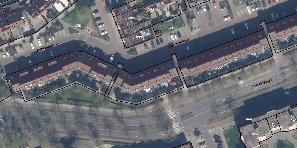 Adenauerlaan 68 is gelegen op kadastraal perceel VDG00K2560. Deze kadastrale aanduiding is uniek en wordt gebruikt door het Kadaster om eigendomsrechten en andere zakelijke rechten vast te leggen. Het perceel maakt onderdeel uit van de kadastrale gemeente Vlaardingen.