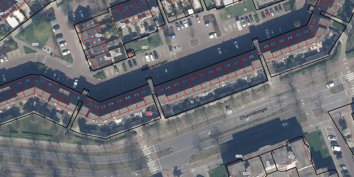 Het perceel waarop Adenauerlaan 86 staat heeft een oppervlakte van 6460 m². Dit is een zeer groot perceel. De perceeloppervlakte wordt geregistreerd door het Kadaster. Gedetailleerde informatie over de maten van dit perceel kunt u vinden in het rapport Kadastrale kaart met maatvoering van Adenauerlaan 86.