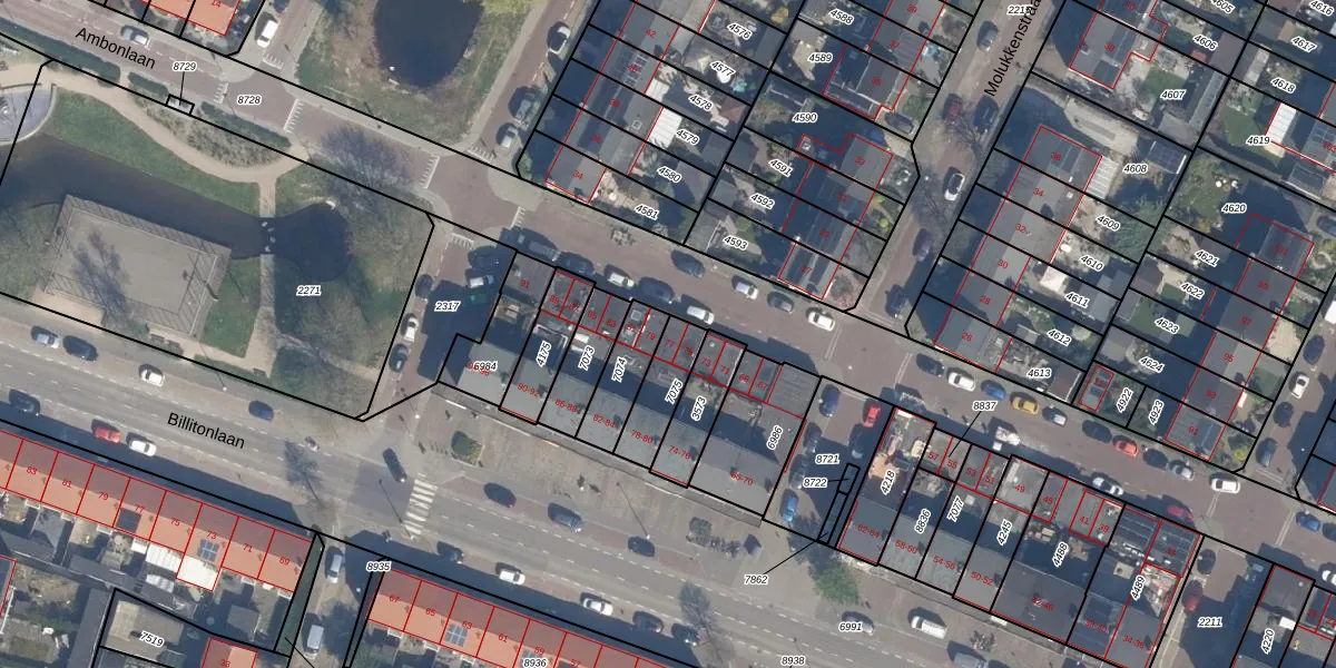 Het perceel waarop Ambonlaan 77 staat heeft een oppervlakte van 138 m². Dit is een middelgroot perceel. De perceeloppervlakte wordt geregistreerd door het Kadaster. Gedetailleerde informatie over de maten van dit perceel kunt u vinden in het rapport Kadastrale kaart met maatvoering van Ambonlaan 77.