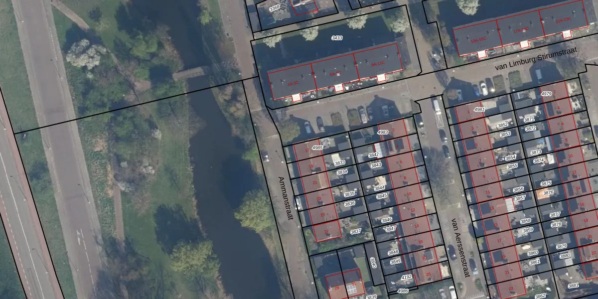 Het perceel waarop Ammanstraat 17 staat heeft een oppervlakte van 129 m². Dit is een middelgroot perceel. De perceeloppervlakte wordt geregistreerd door het Kadaster. Gedetailleerde informatie over de maten van dit perceel kunt u vinden in het rapport Kadastrale kaart met maatvoering van Ammanstraat 17.