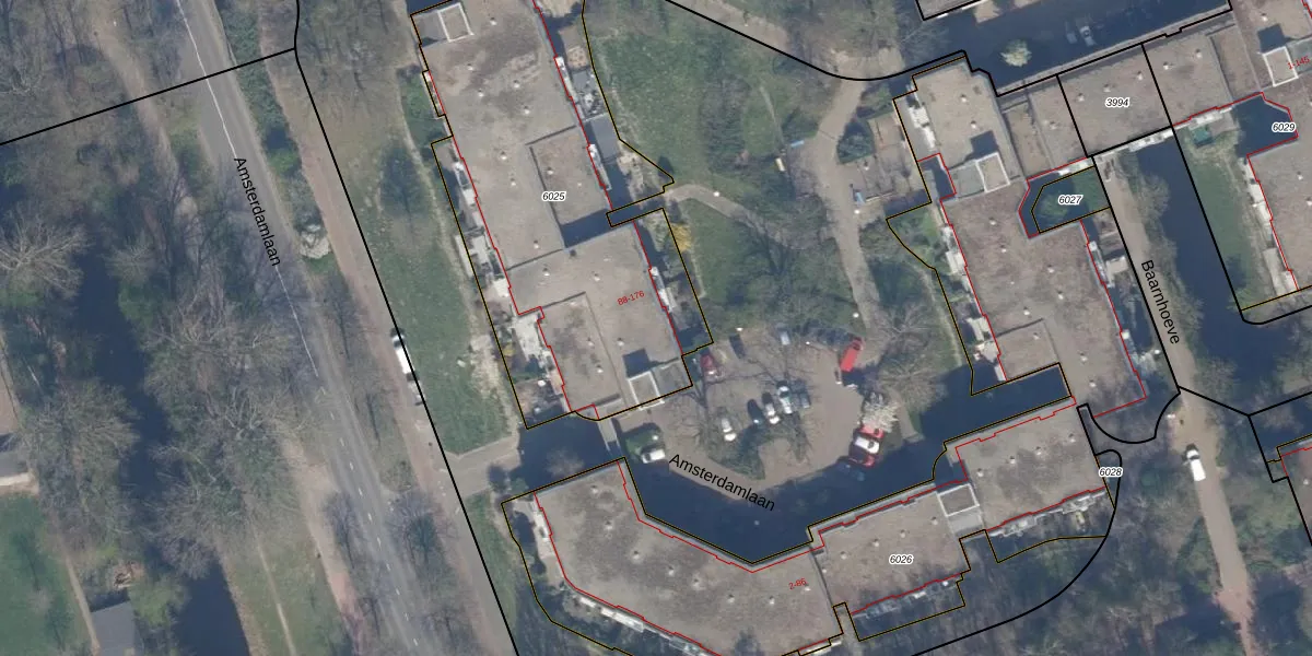 Amsterdamlaan 114 is gelegen op kadastraal perceel VDG00K6025. Deze kadastrale aanduiding is uniek en wordt gebruikt door het Kadaster om eigendomsrechten en andere zakelijke rechten vast te leggen. Het perceel maakt onderdeel uit van de kadastrale gemeente Vlaardingen.