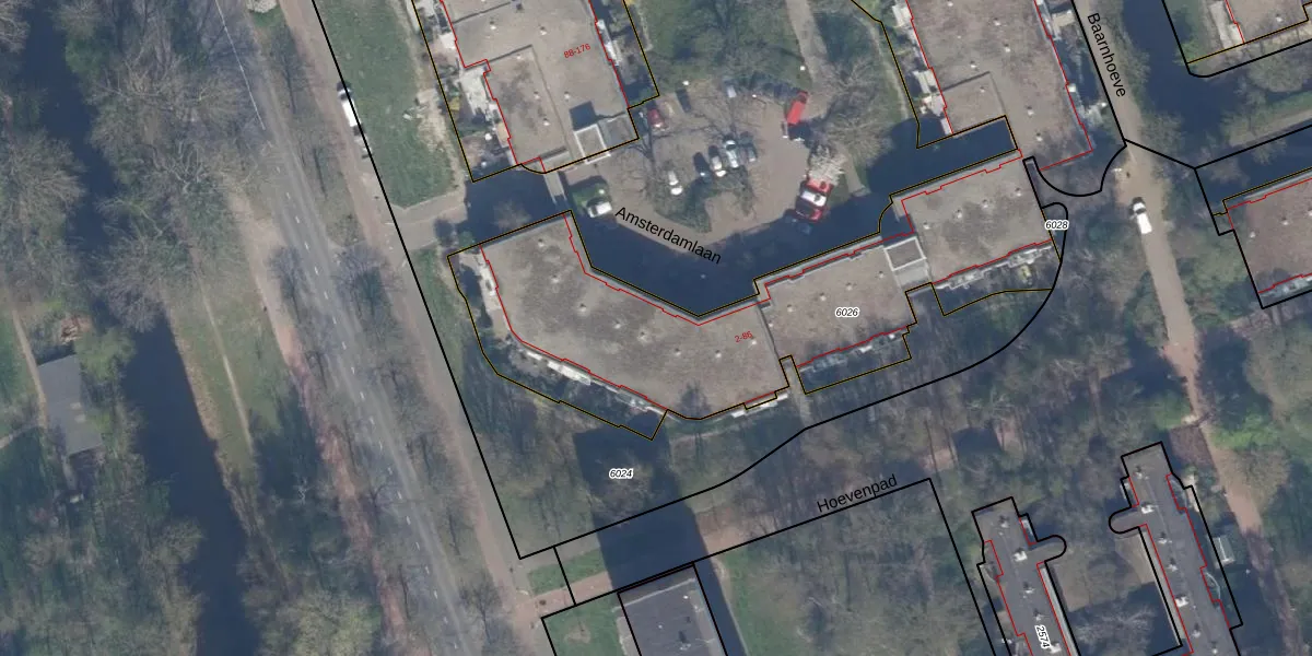 Het perceel waarop Amsterdamlaan 20 staat heeft een oppervlakte van 3198 m². Dit is een zeer groot perceel. De perceeloppervlakte wordt geregistreerd door het Kadaster. Gedetailleerde informatie over de maten van dit perceel kunt u vinden in het rapport Kadastrale kaart met maatvoering van Amsterdamlaan 20.