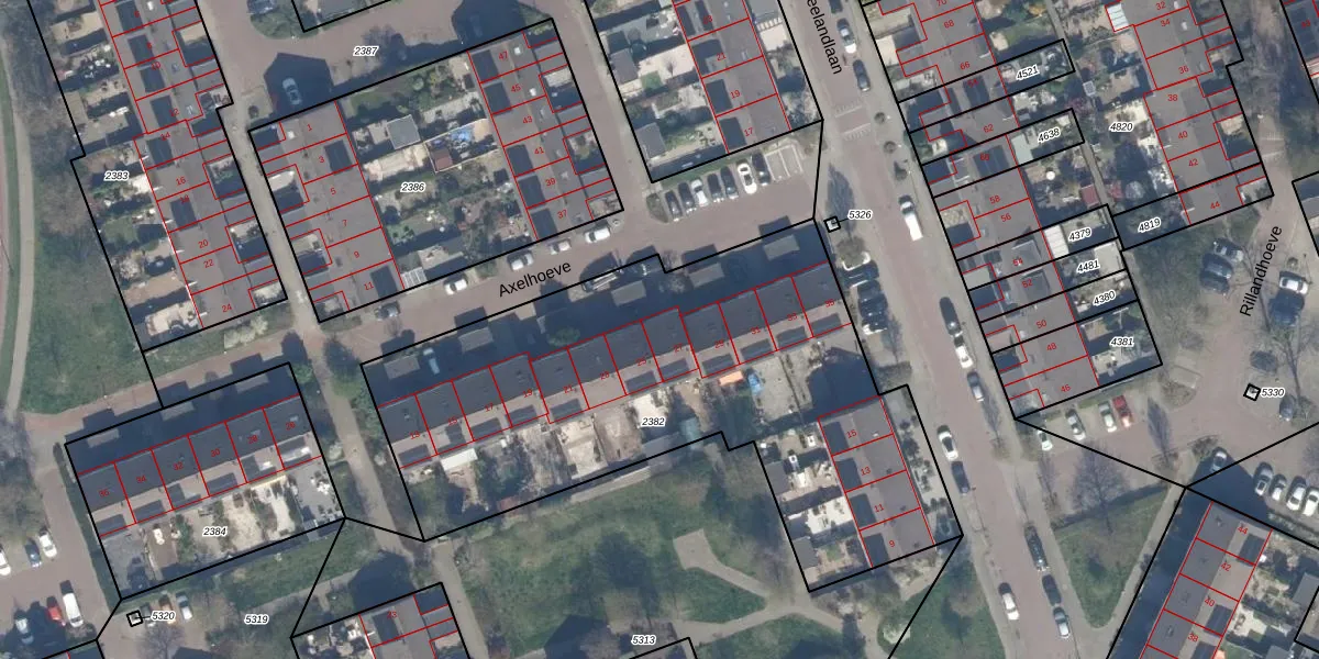 Het perceel waarop Axelhoeve 27 staat heeft een oppervlakte van 2683 m². Dit is een zeer groot perceel. De perceeloppervlakte wordt geregistreerd door het Kadaster. Gedetailleerde informatie over de maten van dit perceel kunt u vinden in het rapport Kadastrale kaart met maatvoering van Axelhoeve 27.