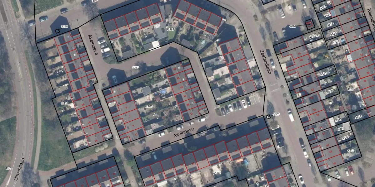 Het perceel waarop Axelhoeve 41 staat heeft een oppervlakte van 1527 m². Dit is een zeer groot perceel. De perceeloppervlakte wordt geregistreerd door het Kadaster. Gedetailleerde informatie over de maten van dit perceel kunt u vinden in het rapport Kadastrale kaart met maatvoering van Axelhoeve 41.