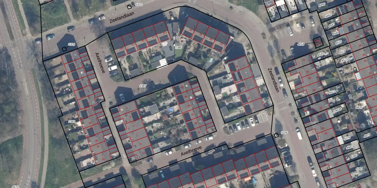 Axelhoeve 45 is gelegen op kadastraal perceel VDG00K2386. Deze kadastrale aanduiding is uniek en wordt gebruikt door het Kadaster om eigendomsrechten en andere zakelijke rechten vast te leggen. Het perceel maakt onderdeel uit van de kadastrale gemeente Vlaardingen.