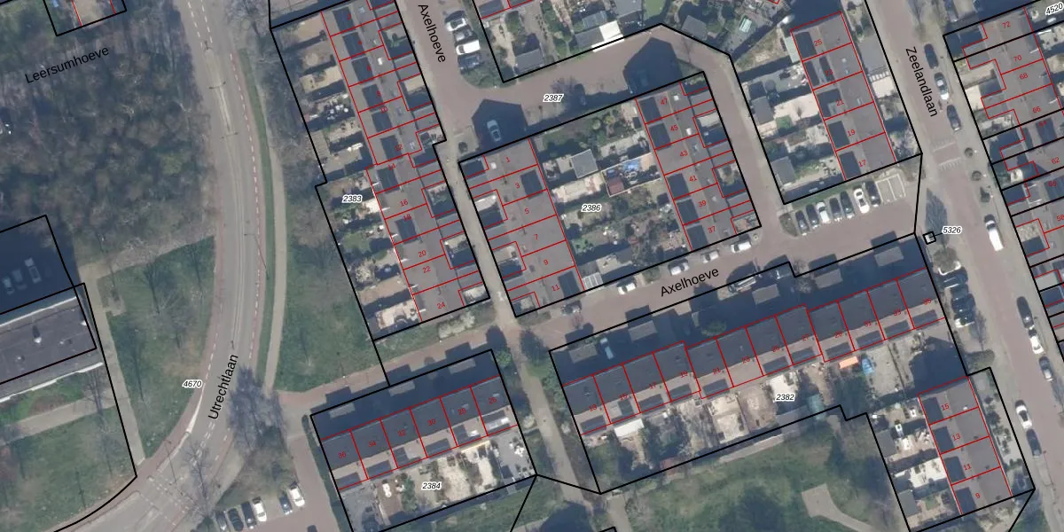 Het perceel waarop Axelhoeve 9 staat heeft een oppervlakte van 1527 m². Dit is een zeer groot perceel. De perceeloppervlakte wordt geregistreerd door het Kadaster. Gedetailleerde informatie over de maten van dit perceel kunt u vinden in het rapport Kadastrale kaart met maatvoering van Axelhoeve 9.