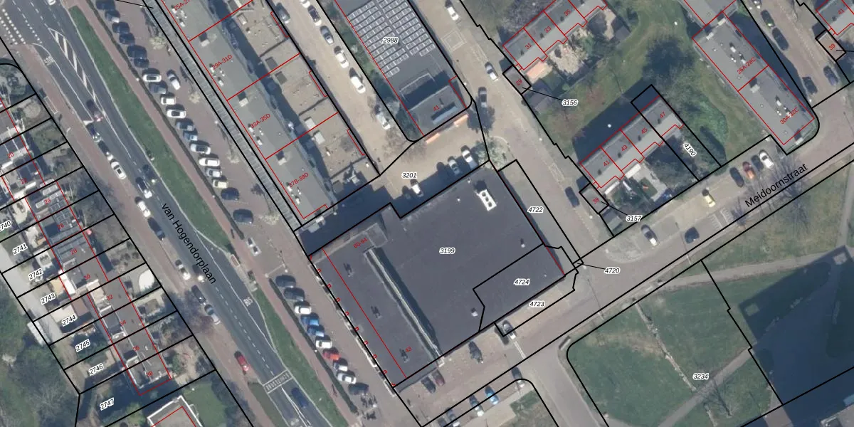 Het adres ligt op het perceel VDG00-G-3199, dat zich in de kadastrale gemeente Vlaardingen bevindt. De oppervlakte van het perceel is 1465 m². Dat is groter dan gemiddeld in Vlaardingen, waar de gemiddelde perceeloppervlakte op 1372,24 m² ligt. Het grootste perceel in de kadastrale gemeente is 1,02 km². Het kleinste perceel heeft een oppervlakte van 0 m². Op het perceel zijn 19 adressen aanwezig. De huidige grenzen van het perceel zijn digitaal in de Basisregistratie Kadaster (BRK) geregistreerd op 29-01-2016.