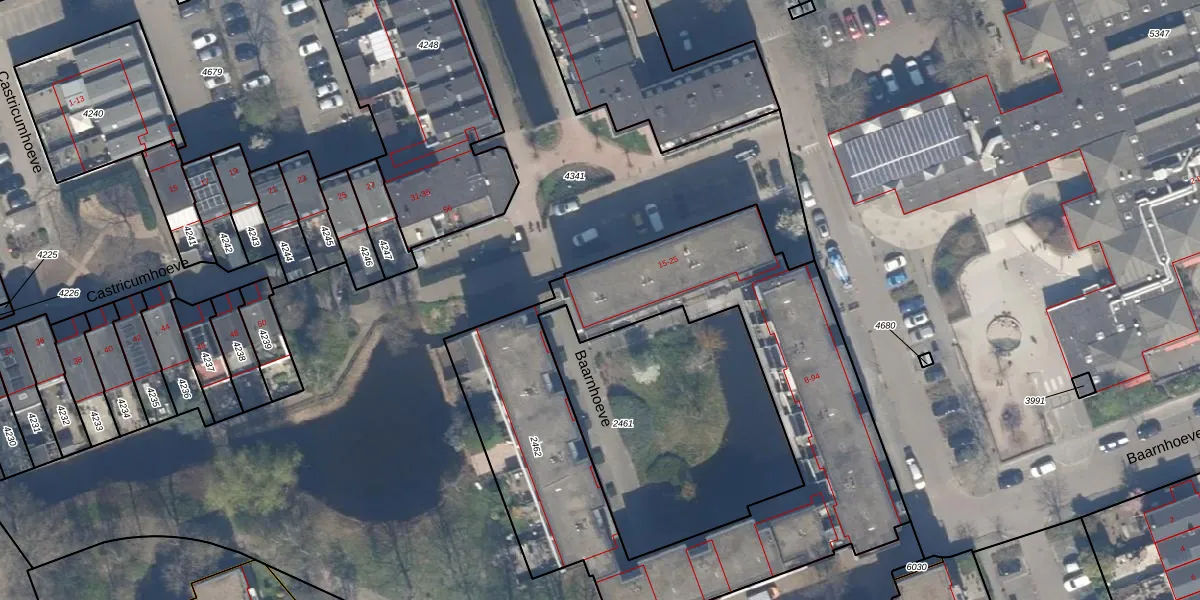 Het perceel waarop Baarnhoeve 88 staat heeft een oppervlakte van 2260 m². Dit is een zeer groot perceel. De perceeloppervlakte wordt geregistreerd door het Kadaster. Gedetailleerde informatie over de maten van dit perceel kunt u vinden in het rapport Kadastrale kaart met maatvoering van Baarnhoeve 88.