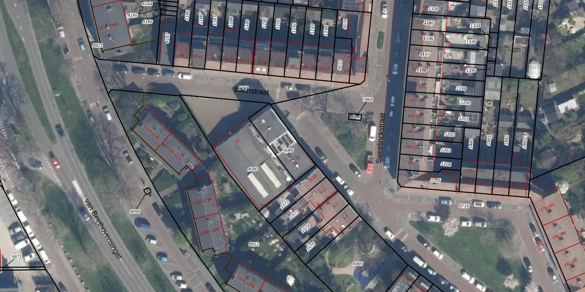 Bachstraat 25 is gelegen op kadastraal perceel VDG00D4089. Deze kadastrale aanduiding is uniek en wordt gebruikt door het Kadaster om eigendomsrechten en andere zakelijke rechten vast te leggen. Het perceel maakt onderdeel uit van de kadastrale gemeente Vlaardingen.
