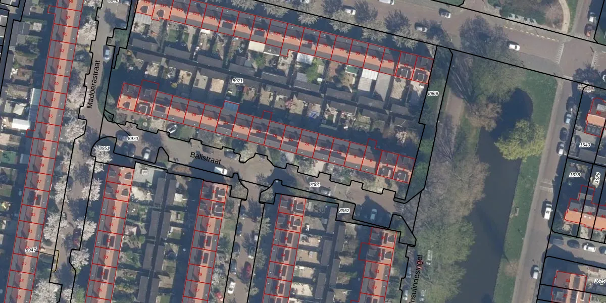 Het perceel waarop Balistraat 14 staat heeft een oppervlakte van 5139 m². Dit is een zeer groot perceel. De perceeloppervlakte wordt geregistreerd door het Kadaster. Gedetailleerde informatie over de maten van dit perceel kunt u vinden in het rapport Kadastrale kaart met maatvoering van Balistraat 14.