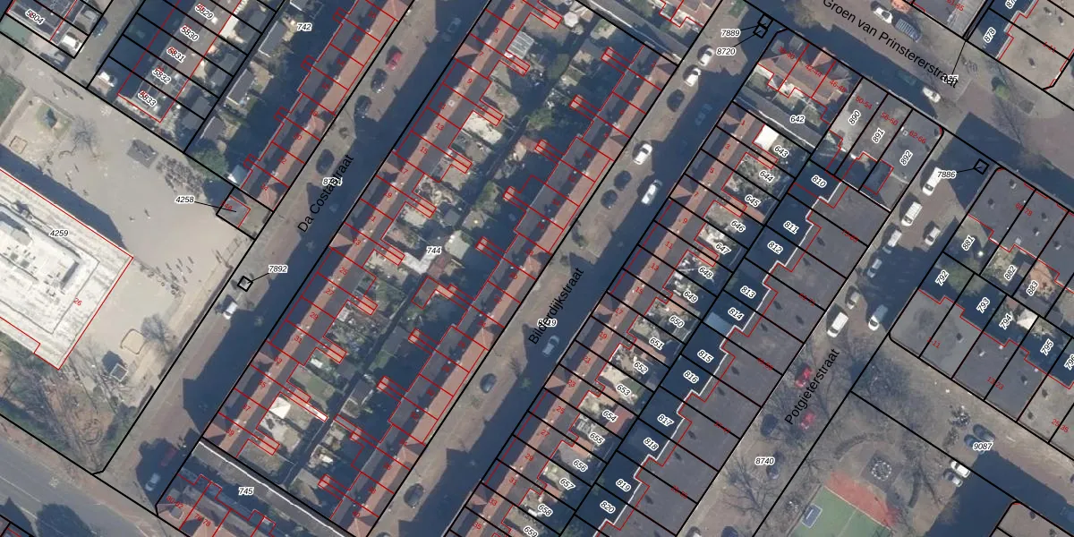 Het perceel waarop Bilderdijkstraat 18 staat heeft een oppervlakte van 3830 m². Dit is een zeer groot perceel. De perceeloppervlakte wordt geregistreerd door het Kadaster. Gedetailleerde informatie over de maten van dit perceel kunt u vinden in het rapport Kadastrale kaart met maatvoering van Bilderdijkstraat 18.