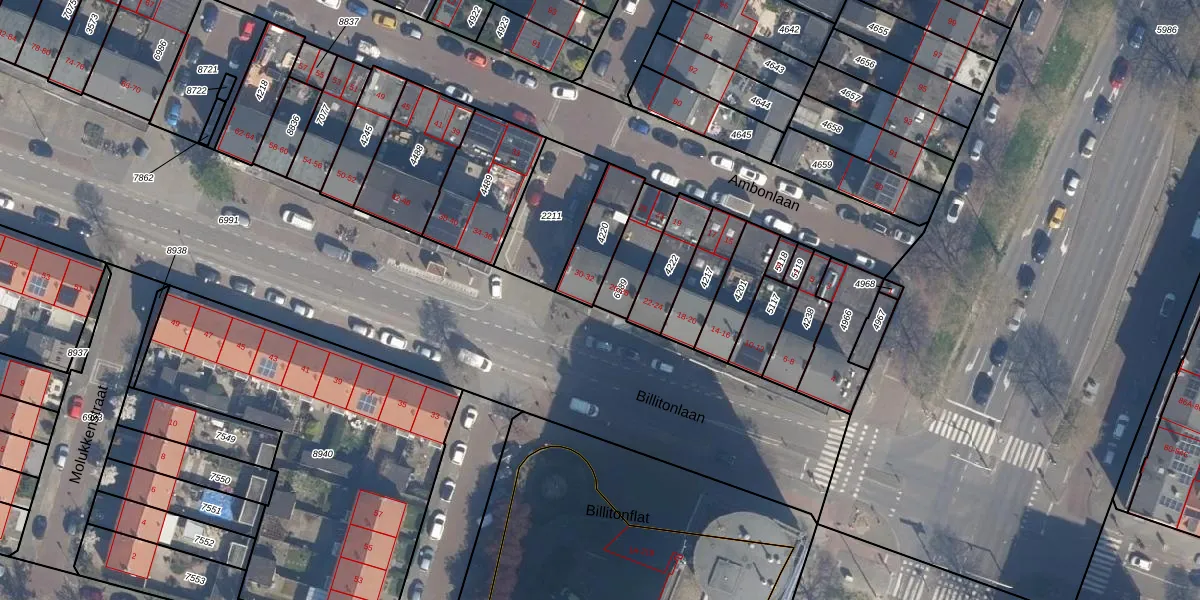 Billitonlaan 28 is gelegen op kadastraal perceel VDG00D6989. Deze kadastrale aanduiding is uniek en wordt gebruikt door het Kadaster om eigendomsrechten en andere zakelijke rechten vast te leggen. Het perceel maakt onderdeel uit van de kadastrale gemeente Vlaardingen.