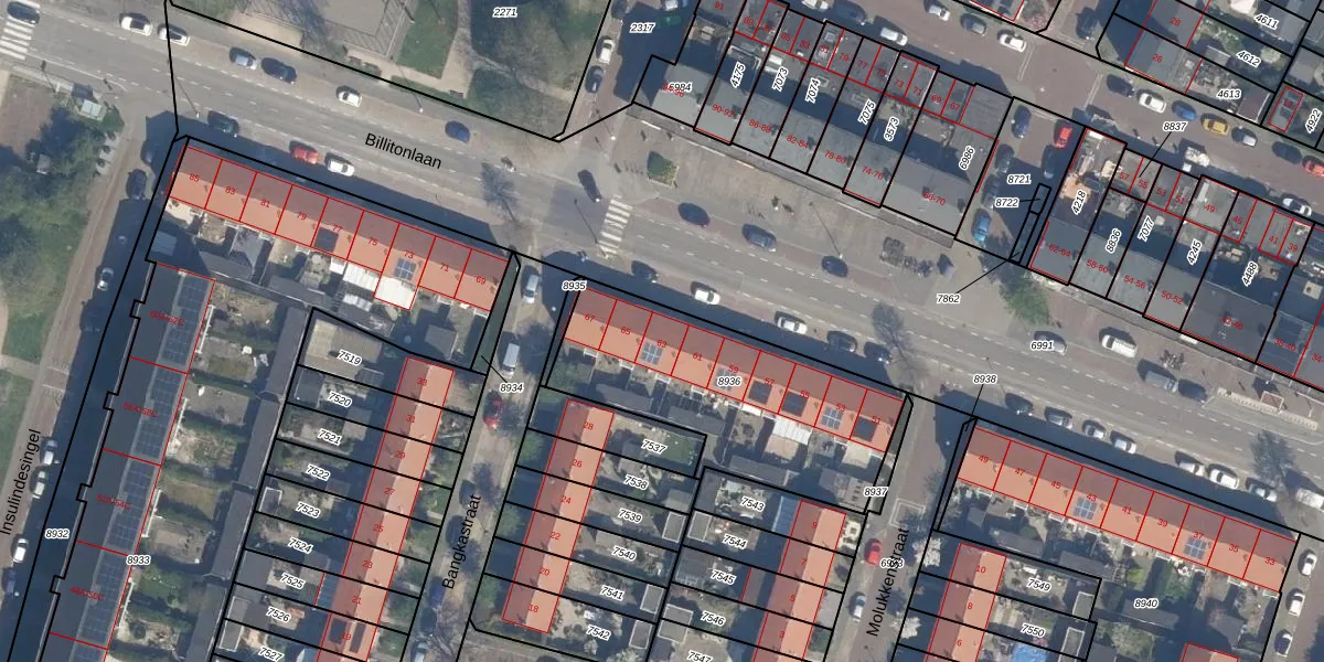 Het perceel waarop Billitonlaan 63 staat heeft een oppervlakte van 961 m². Dit is een groot perceel. De perceeloppervlakte wordt geregistreerd door het Kadaster. Gedetailleerde informatie over de maten van dit perceel kunt u vinden in het rapport Kadastrale kaart met maatvoering van Billitonlaan 63.