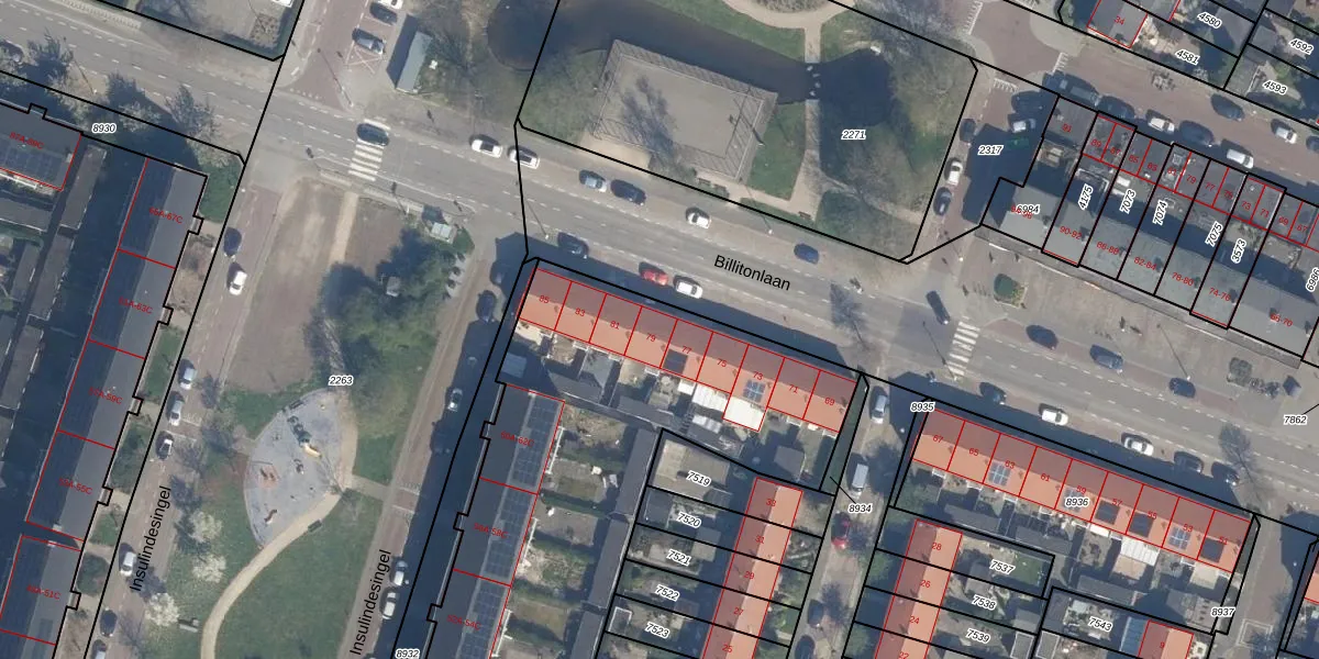 Billitonlaan 79 is gelegen op kadastraal perceel VDG00D8933. Deze kadastrale aanduiding is uniek en wordt gebruikt door het Kadaster om eigendomsrechten en andere zakelijke rechten vast te leggen. Het perceel maakt onderdeel uit van de kadastrale gemeente Vlaardingen.