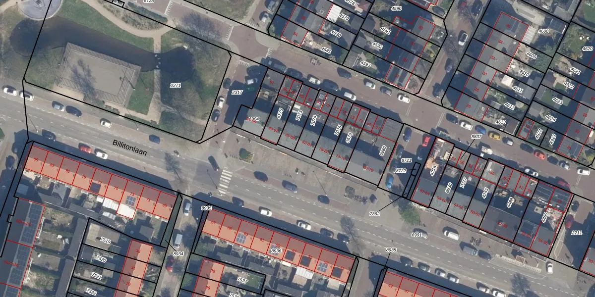 Billitonlaan 84 is gelegen op kadastraal perceel VDG00D7074. Deze kadastrale aanduiding is uniek en wordt gebruikt door het Kadaster om eigendomsrechten en andere zakelijke rechten vast te leggen. Het perceel maakt onderdeel uit van de kadastrale gemeente Vlaardingen.