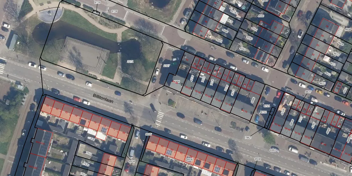 Billitonlaan 94 is gelegen op kadastraal perceel VDG00D6984. Deze kadastrale aanduiding is uniek en wordt gebruikt door het Kadaster om eigendomsrechten en andere zakelijke rechten vast te leggen. Het perceel maakt onderdeel uit van de kadastrale gemeente Vlaardingen.