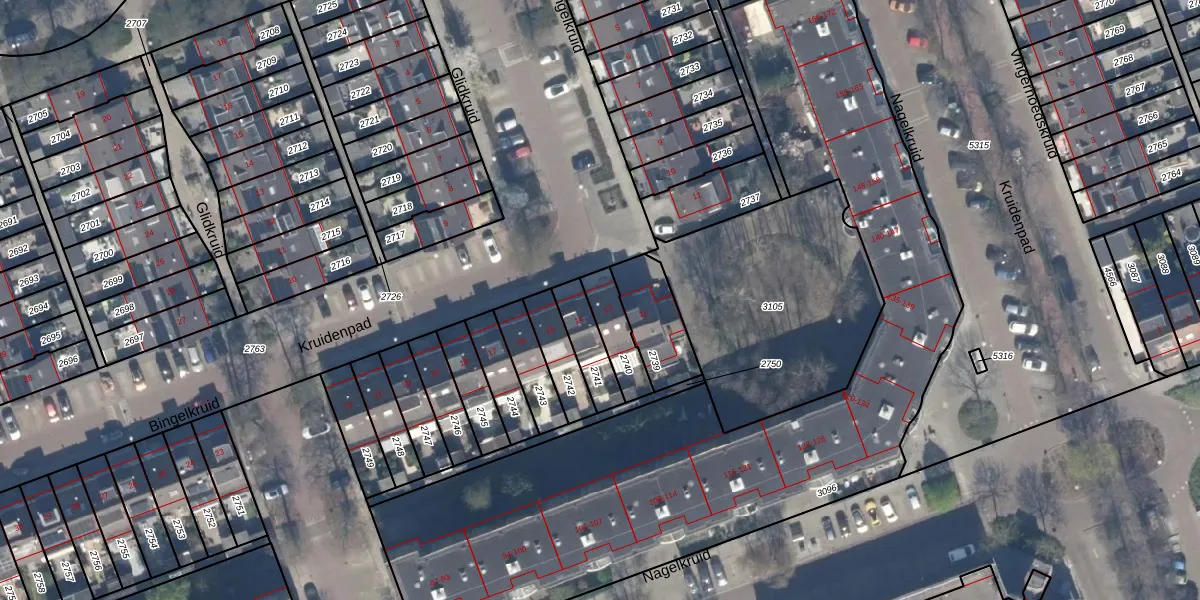 Gebruik de zoekbalk of klik op een perceel voor informatie over de adressen binnen dit perceel.