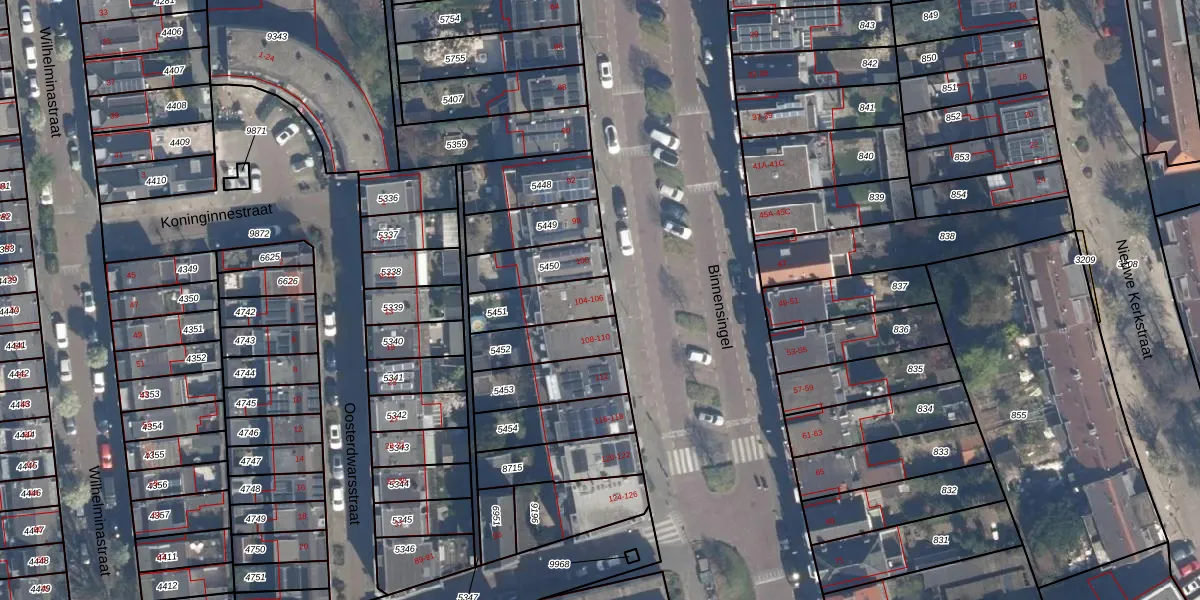 Het perceel waarop Binnensingel 106 staat heeft een oppervlakte van 160 m². Dit is een middelgroot perceel. De perceeloppervlakte wordt geregistreerd door het Kadaster. Gedetailleerde informatie over de maten van dit perceel kunt u vinden in het rapport Kadastrale kaart met maatvoering van Binnensingel 106.