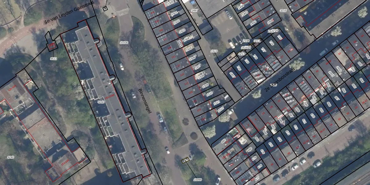 Het perceel waarop Binnensingel 119 staat heeft een oppervlakte van 102 m². Dit is een middelgroot perceel. De perceeloppervlakte wordt geregistreerd door het Kadaster. Gedetailleerde informatie over de maten van dit perceel kunt u vinden in het rapport Kadastrale kaart met maatvoering van Binnensingel 119.