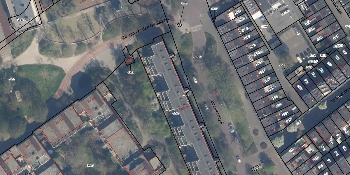 Het perceel waarop Binnensingel 178 staat heeft een oppervlakte van 1460 m². Dit is een zeer groot perceel. De perceeloppervlakte wordt geregistreerd door het Kadaster. Gedetailleerde informatie over de maten van dit perceel kunt u vinden in het rapport Kadastrale kaart met maatvoering van Binnensingel 178.