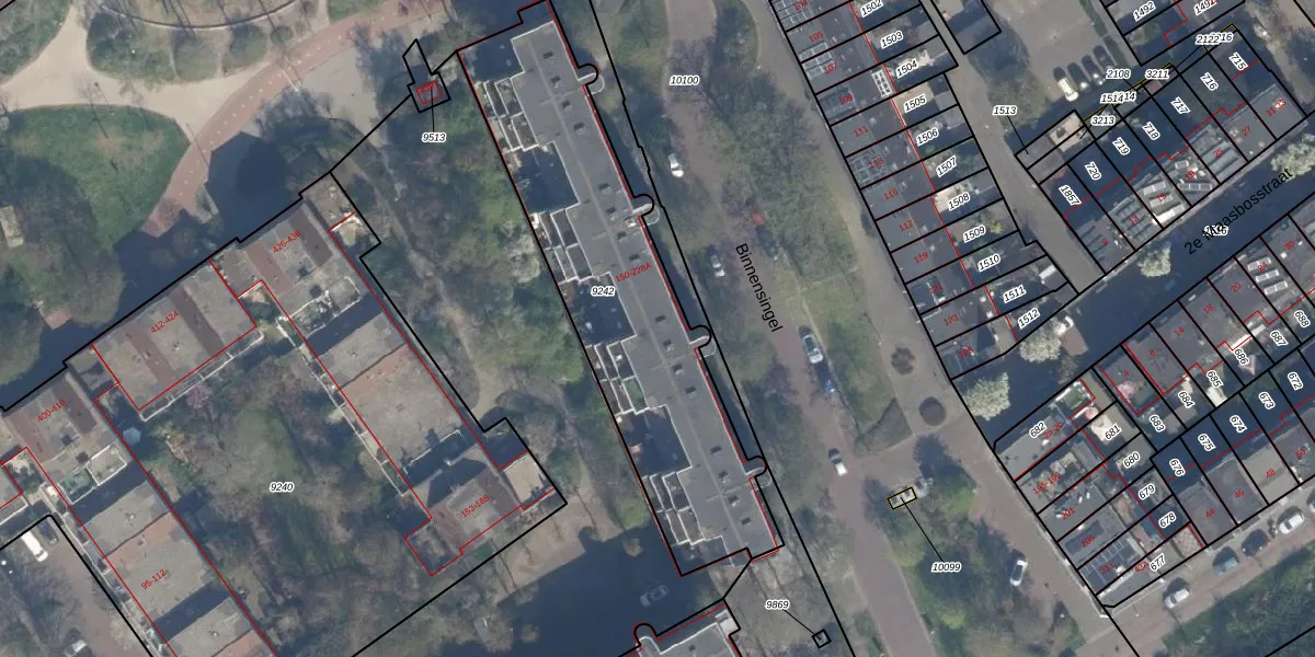 Binnensingel 198 is gelegen op kadastraal perceel VDG00B9242. Deze kadastrale aanduiding is uniek en wordt gebruikt door het Kadaster om eigendomsrechten en andere zakelijke rechten vast te leggen. Het perceel maakt onderdeel uit van de kadastrale gemeente Vlaardingen.