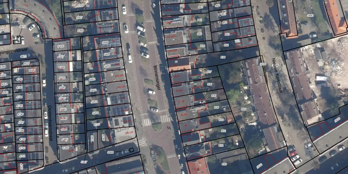 Het perceel waarop Binnensingel 53 staat heeft een oppervlakte van 198 m². Dit is een middelgroot perceel. De perceeloppervlakte wordt geregistreerd door het Kadaster. Gedetailleerde informatie over de maten van dit perceel kunt u vinden in het rapport Kadastrale kaart met maatvoering van Binnensingel 53.