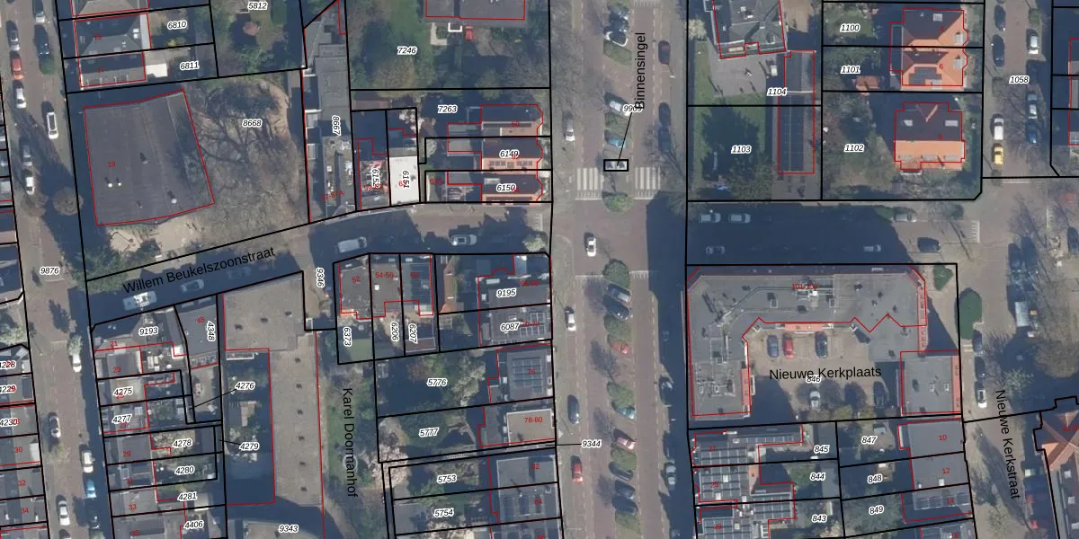 Het perceel waarop Binnensingel 66 staat heeft een oppervlakte van 224 m². Dit is een middelgroot perceel. De perceeloppervlakte wordt geregistreerd door het Kadaster. Gedetailleerde informatie over de maten van dit perceel kunt u vinden in het rapport Kadastrale kaart met maatvoering van Binnensingel 66.