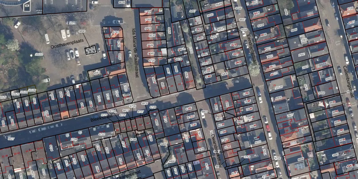 Het perceel waarop Bleekstraat 53 staat heeft een oppervlakte van 80 m². Dit is een klein perceel. De perceeloppervlakte wordt geregistreerd door het Kadaster. Gedetailleerde informatie over de maten van dit perceel kunt u vinden in het rapport Kadastrale kaart met maatvoering van Bleekstraat 53.