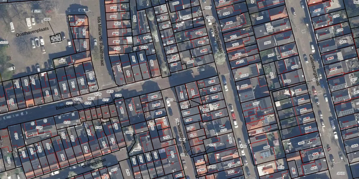 Het perceel waarop Bleekstraat 98 staat heeft een oppervlakte van 54 m². Dit is een klein perceel. De perceeloppervlakte wordt geregistreerd door het Kadaster. Gedetailleerde informatie over de maten van dit perceel kunt u vinden in het rapport Kadastrale kaart met maatvoering van Bleekstraat 98.