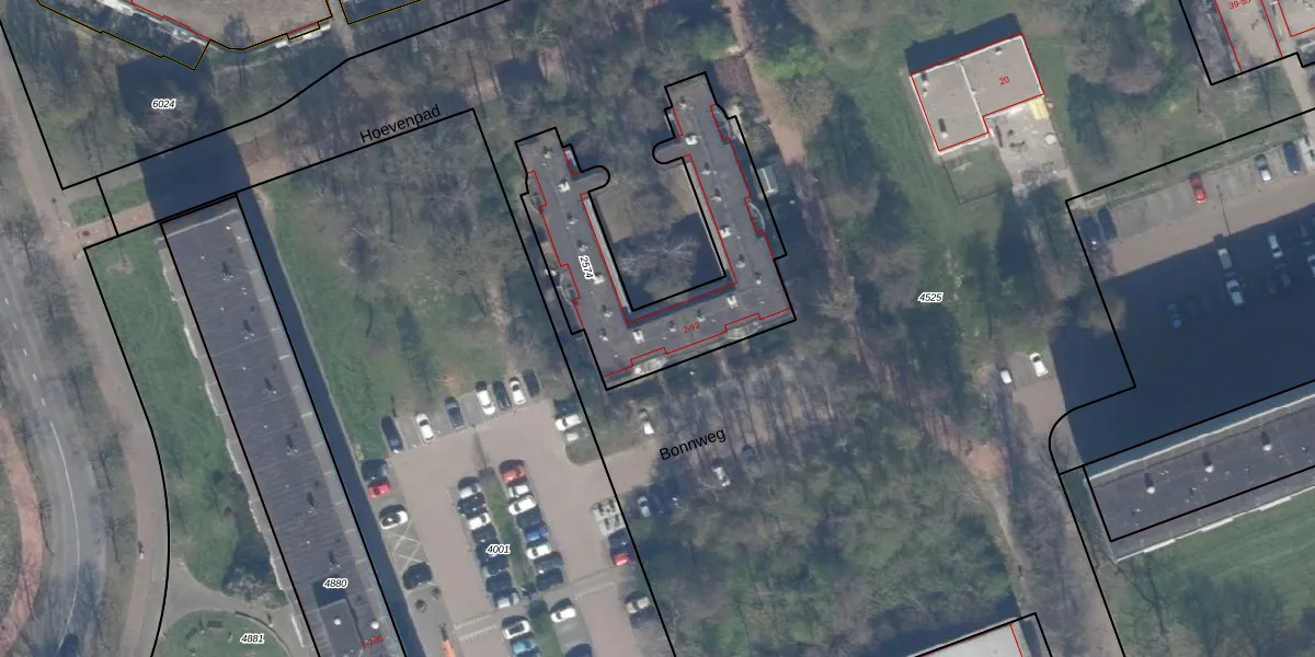 Het perceel waarop Bonnweg 54 staat heeft een oppervlakte van 885 m². Dit is een groot perceel. De perceeloppervlakte wordt geregistreerd door het Kadaster. Gedetailleerde informatie over de maten van dit perceel kunt u vinden in het rapport Kadastrale kaart met maatvoering van Bonnweg 54.