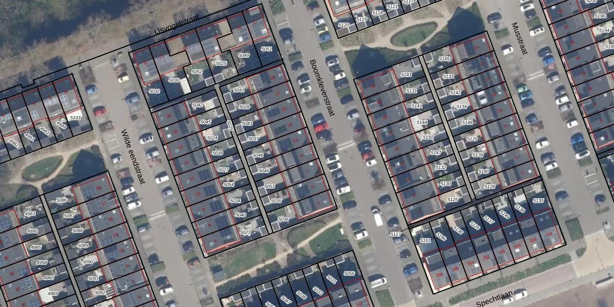 Het perceel waarop Boomkleverstraat 9 staat heeft een oppervlakte van 121 m². Dit is een middelgroot perceel. De perceeloppervlakte wordt geregistreerd door het Kadaster. Gedetailleerde informatie over de maten van dit perceel kunt u vinden in het rapport Kadastrale kaart met maatvoering van Boomkleverstraat 9.
