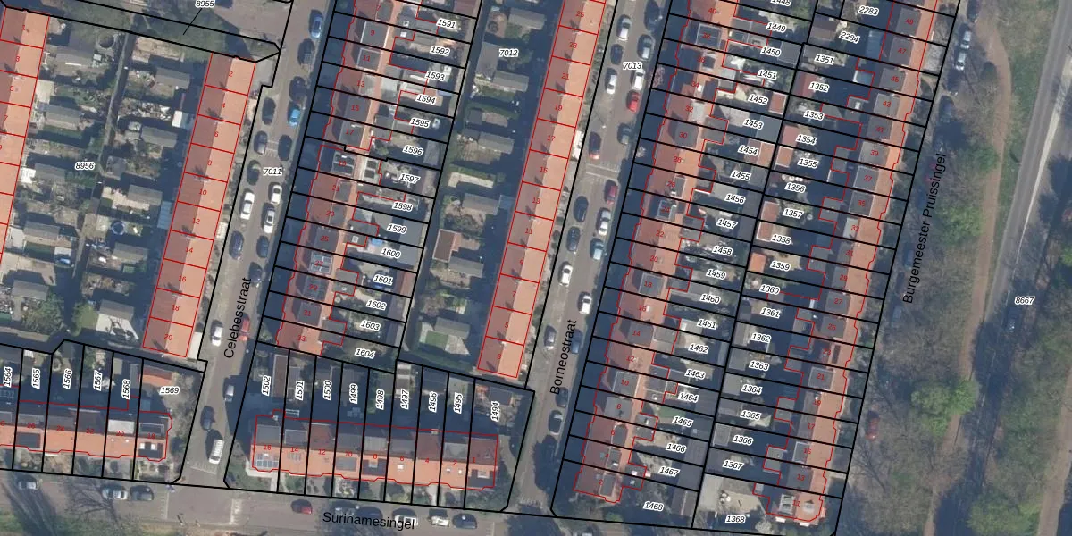 Het perceel waarop Borneostraat 9 staat heeft een oppervlakte van 3212 m². Dit is een zeer groot perceel. De perceeloppervlakte wordt geregistreerd door het Kadaster. Gedetailleerde informatie over de maten van dit perceel kunt u vinden in het rapport Kadastrale kaart met maatvoering van Borneostraat 9.