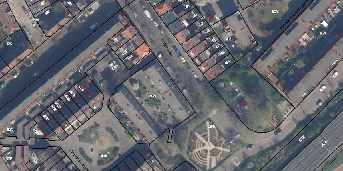 Het perceel waarop Boslaan 54 staat heeft een oppervlakte van 1468 m². Dit is een zeer groot perceel. De perceeloppervlakte wordt geregistreerd door het Kadaster. Gedetailleerde informatie over de maten van dit perceel kunt u vinden in het rapport Kadastrale kaart met maatvoering van Boslaan 54.