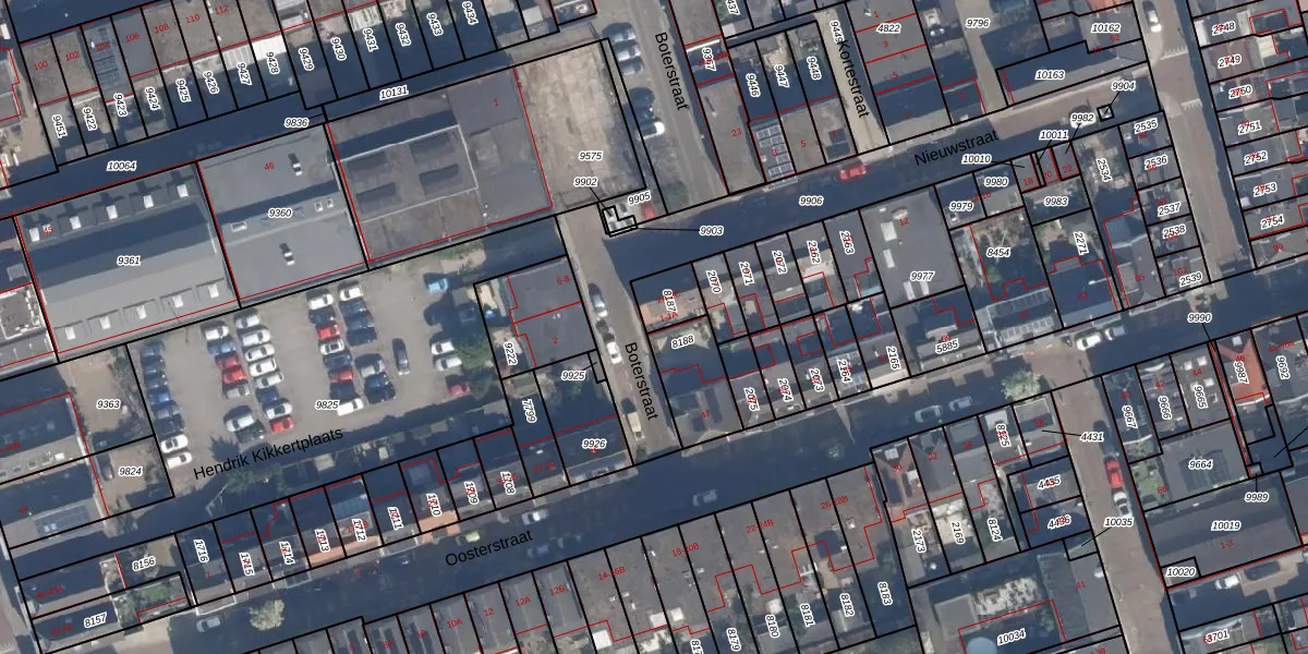 Het perceel waarop Boterstraat 1-A staat heeft een oppervlakte van 83 m². Dit is een klein perceel. De perceeloppervlakte wordt geregistreerd door het Kadaster. Gedetailleerde informatie over de maten van dit perceel kunt u vinden in het rapport Kadastrale kaart met maatvoering van Boterstraat 1-A.