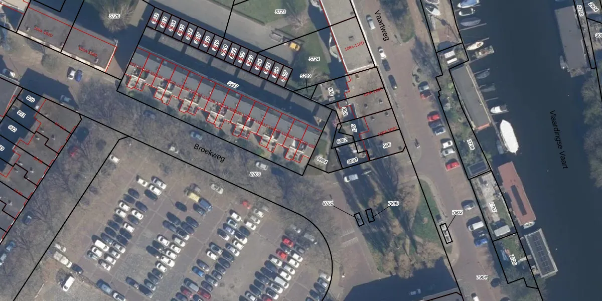 Broekweg 100 is gelegen op kadastraal perceel VDG00D5287. Deze kadastrale aanduiding is uniek en wordt gebruikt door het Kadaster om eigendomsrechten en andere zakelijke rechten vast te leggen. Het perceel maakt onderdeel uit van de kadastrale gemeente Vlaardingen.