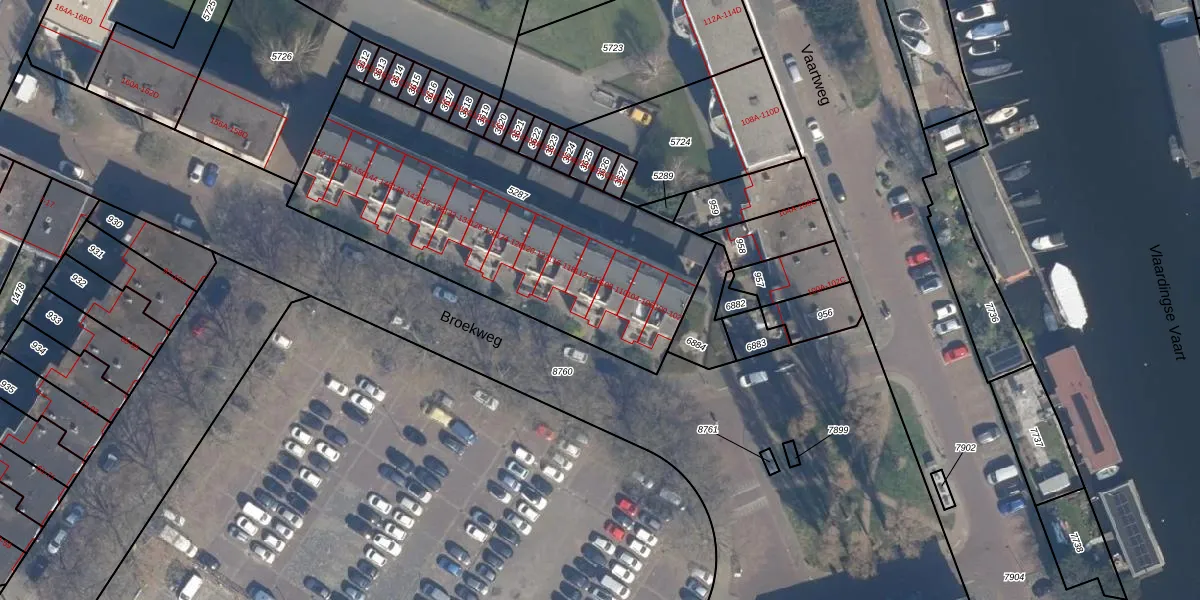 Broekweg 108 is gelegen op kadastraal perceel VDG00D5287. Deze kadastrale aanduiding is uniek en wordt gebruikt door het Kadaster om eigendomsrechten en andere zakelijke rechten vast te leggen. Het perceel maakt onderdeel uit van de kadastrale gemeente Vlaardingen.