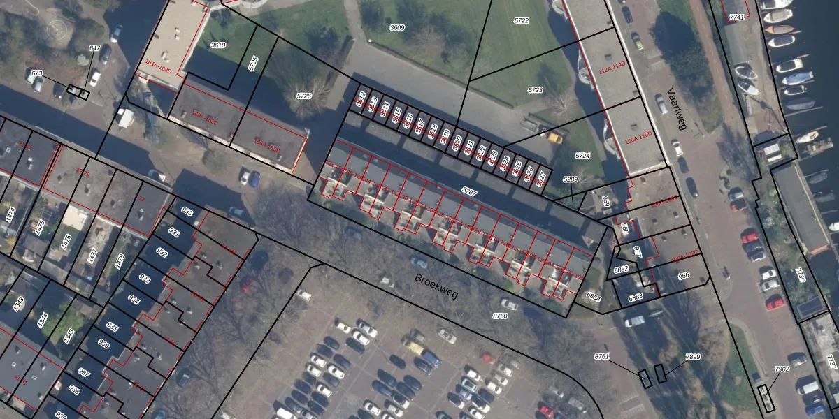 Broekweg 134 is gelegen op kadastraal perceel VDG00D5287. Deze kadastrale aanduiding is uniek en wordt gebruikt door het Kadaster om eigendomsrechten en andere zakelijke rechten vast te leggen. Het perceel maakt onderdeel uit van de kadastrale gemeente Vlaardingen.