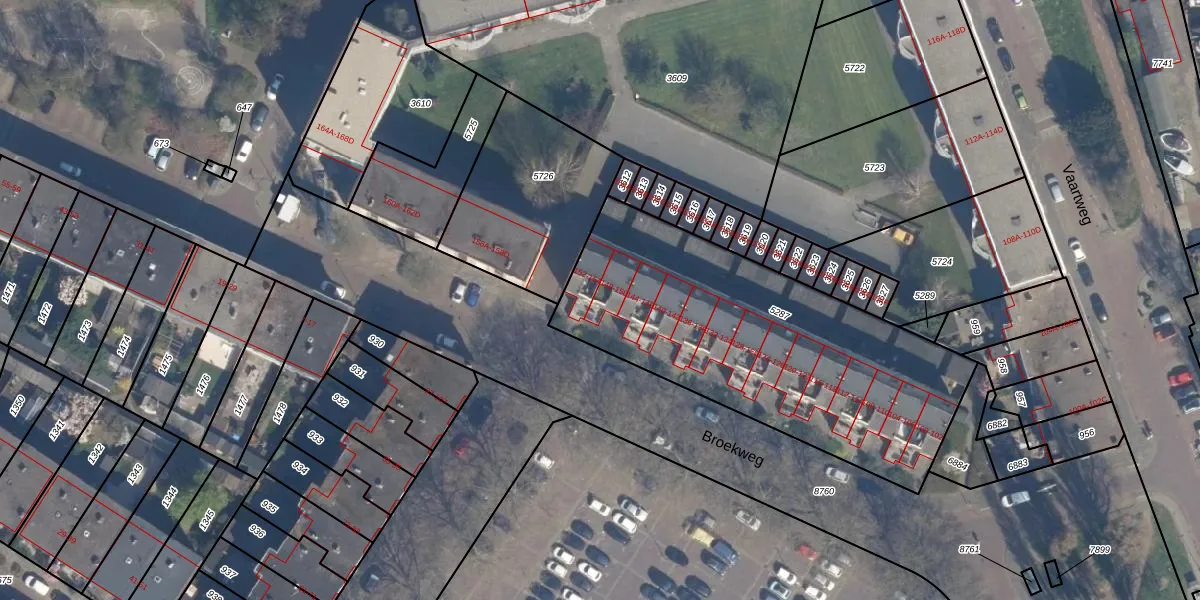 Broekweg 148 is gelegen op kadastraal perceel VDG00D5287. Deze kadastrale aanduiding is uniek en wordt gebruikt door het Kadaster om eigendomsrechten en andere zakelijke rechten vast te leggen. Het perceel maakt onderdeel uit van de kadastrale gemeente Vlaardingen.